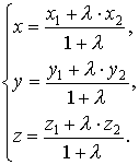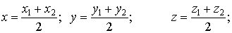 В частном случае деления отрезка пополам λ = 1 получим координаты точки деления