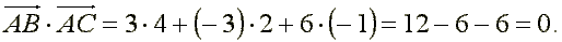 Так как скалярное произведение векторов, исходящих из вершины ∠ А равно нулю, то угол ∠ А является прямым.