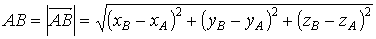 Расстояние между двумя точками А и В есть модуль (длина) вектора AB или BA. Поэтому, чтобы вывести формулу расстояния между двумя точками, достаточно найти модуль вектора в общем виде. Пусть А(хА, yA, zA), В(хВ, yB, zB)