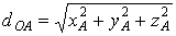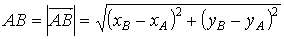 Если точки А и В лежат, примеру, в плоскости Оху, то zA = zB = 0 и формула расстояния между двумя точками имеет вид