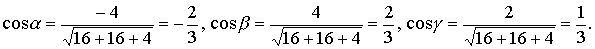 ОТВЕТ УКАЗАН НЕПРАВИЛЬНО!Правильное решение. Найдём координаты вектора AB AB = [- 1 - 3, 8 - 4, - 3 + 5] = [- 4, 4, 2]. По формулам находим направляющие косинусы вектора
