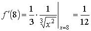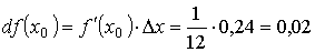 , приращение аргумента Δ x = x - x0 = 8,24 − 8 = 0,24, производная функции в точке х0 = 8