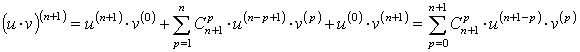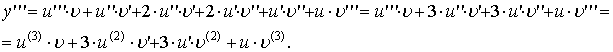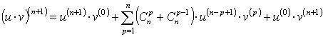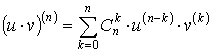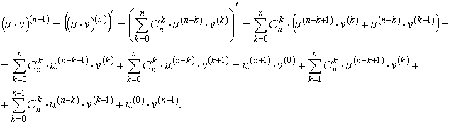 по формуле Ньютона, но вместо показателей степени стоят числа, определяющие порядок производных, а сами функции u и v для полной аналогии с формулой Ньютона нужно рассматривать как «производные нулевого порядка»: u(0) и v(0).