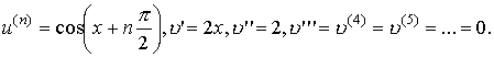 Пример 3. Вычислить n - ю производную (n ≥ 2) функции y = x2·cos x.