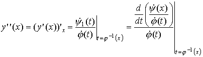 Пусть существуют вторые производные функций φ(t) и ψ(t) при некотором значении параметра t. Тогда можно вычислить вторую производную функции, заданной параметрически. Заметим, что первая производная