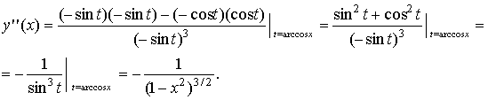 Пример 5. Найти y''(x), если x = φ (t) = ψ(t) = cos t, y = sin t (0 ≤ t ≤ π).