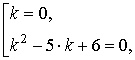 Характеристическое уравнение для дифференциального уравнения (2) имеет видk3 - 5·k2 + 6 k = 0, (3)