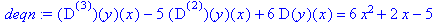 > deqn:=(D@@3)(y)(x)-5*(D@@2)(y)(x)+6*D(y)(x)=6*x^2+2*x-5;