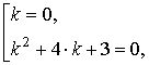 Характеристическое уравнение для дифференциального уравнения (2) имеет видk3 + 4·k2 + 3 k = 0, (3)