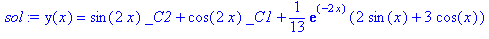 [ ( 3 A - 4 B ) cos x + ( 4 A + 3 B ) sin x ] e- 2x + 4 e- 2x ( A cos x + B sin x ) = e-2x·(cos x + 2 sin x).