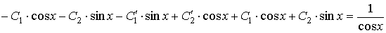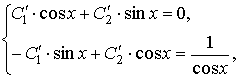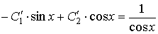 Для того, чтобы соотношение (4) было решением уравнения (1), будем считать, что величины С1 и С2 были некоторыми функциями аргумента:y = C1(x)·cos x + C2(x)·sin x. (5)