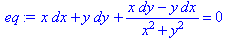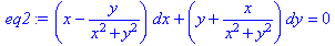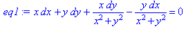 >restart:eq:=x*dx+y*dy+(x*dy-y*dx)/(x^2+y^2)=0;