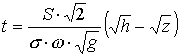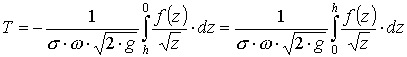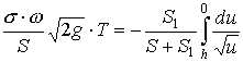 Если, к примеру, S = 100 м2, h = 2,5 м, ω = 0,5 м2, σ = 0,62, то время истечения жидкости из резервуара равно Т = 230,41 сек. ≈ 3 мин 50 сек.