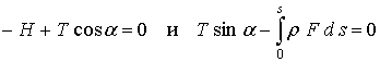 Обозначим буквой ρ плотность, а через F - переменную площадь поперечного сечения нити. Тогда уравнения равновесия представятся в виде