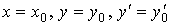 Для уравнения второго порядка y'' = f (x, y, y') начальными условиями будут