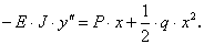 Если брус изгибается внешними силами и мы обозначим через Е- модуль Юнга материала, из которого он сделан, через J - момент инерции поперечного сечения бруса относительно его нейтральной оси, через ρ - радиус кривизны изогнутой оси бруса (упругой линии) в точке, через которую проходит взятое сечение, и через М - изгибающий момент внешних сил, расположенных справа (или слева) от взятого сечения s, q — интенсивность равномерно распределённой нагрузки, то, как известно ,