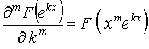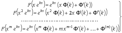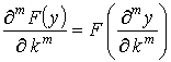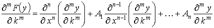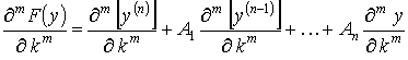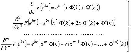 y = C1 е r1х + C2 е r1х + + Cn е rnх = A е r1х + Cm+1 е rm+1х + + Cn е rnх. где А = C1 + + Cm. Это выражение содержит не n, а только n - m произвольных постоянных, а потому перестает быть общим интегралом. Исследуя этот случай, положим для краткостиy(n) + A1 y(n-1) + A2 y(n-2) + + An-1 y' + An y = F(y) (10) ТогдаF(ekx) = (kn + A1 kn-1 + A2 kn-2 + + An-1 k + An) ekx илиF(ekx) = ekx Φ (k), где Φ (k) = kn + A1 kn-1 + A2 kn-2 + + An-1 k + An. дифференцируя по параметру k, мы получим Составим теперь m - ую производную от (10) по переменной k; будем иметь