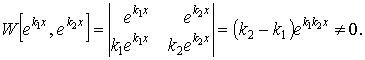 - Корни характеристического уравнения вещественны и различны. Если эти корни суть числа r1, r2,..., rn, то мы