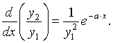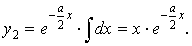 При этом будем предполагать, что W0 = 1. Это уравнение в развёрнутой форме имеет видy1·y2' - y1'·y2 = e- a x.