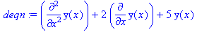 > restart:deqn:=(D@@2)(y)(x)+2*D(y)(x)+5*y(x);