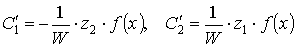 .Произвольные постоянные C1 и С2 определятся из начальных условий: