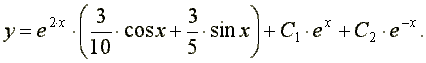 Решение. Методом подбора по правой части общее решение этого уравнения получается в виде