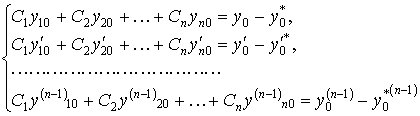 Замечание. Не существует общих методов для нахождения в конечном виде общего решения линейного уравнения с переменными коэффициентами. Однако для уравнения с постоянными коэффициентами такой метод существует.Для случая же уравнений с переменными коэффициентами в главе "Ряды" будут указаны некоторые приемы, которые дадут возможность находить приближенные решения, удовлетворяющие определенным начальным условиям.