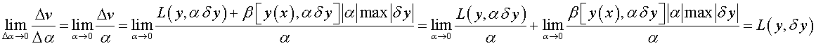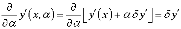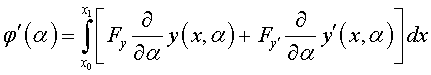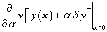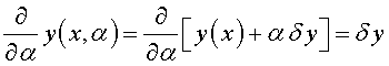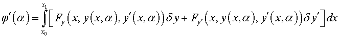 .Возьмем какую-нибудь близкую к у = у (х) допустимую кривую у = у0 (х) и включим кривые у = у (х) и у = у0 (х) в однопараметрическое семейство кривых y (х, α) = у (х) + α ( у0 (х) - у (х) ); при α = 0 получим кривую у = у (х), при α = 1 имеем у = у0 (х). Как мы уже знаем» разность у0 (х) - у (х) называется вариацией функции у (х) и обозначается δ y.