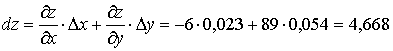 Вычислим значение дифференциала первого порядка в точке В при найденных приращениях аргументов
