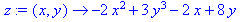 > restart:z:=(x,y)->-2*x^2+3*y^3-2*x+8*y;