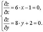 Найти максимальное и минимальное значения функции z = 3·x2 + 4·y2– x – 2·y в замкнутой области треугольника с вершинами А(– 1; 2), В(- 3; – 1), С(1; 3).