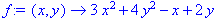 > restart:with(plottools):with(plots):with(geometry): f:=(x,y)->3*x^2+4*y^2-x+2*y;