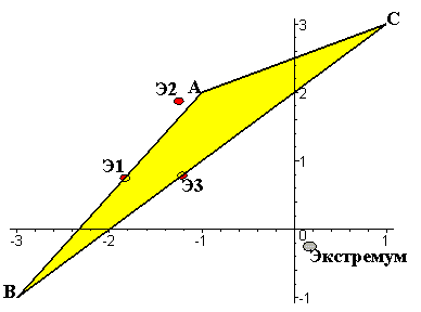 Условный экстремум функции на прямой ВС достигается в точке Э3