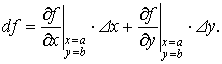 f (x, y) в точке х = а, у = b при изменении аргументов на Δх = х – а, Δу = у – b определился соотношением, если использовать символическое обозначение