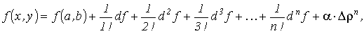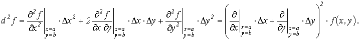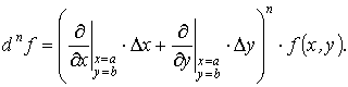 Дифференциал n - го порядка функции f (x, y) в точке х = а, у = b при изменении аргументов на величины Δх = х – а, Δу = у – b имеет вид