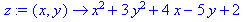 > restart:z:=(x,y)->x^2+3*y^2+4*x-5*y+2;