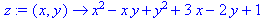 > restart:z:=(x,y)->x^2-x*y+y^2+3*x-2*y+1;