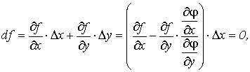 Этот метод позволяет уменьшить число уравнений в системе необходимых условий экстремума на число уравнений связей. Кроме того он позволяет не вводить в рассмотрение множители Лагранжа и не исключать переменные. В силу дополнительных условий, переменные Δх и Δу не являются независимыми, а связаны соотношением
