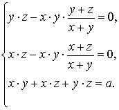 Решение. Обозначим измерения прямоугольного параллелепипеда х, у, z. Задачу можно дать в следующей формулировке: для функции V = x·y·z найти значения х, у, z, удовлетворяющие условию x·y + x·z + y·z = a,