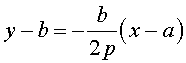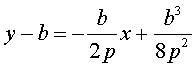 Р е ш е н и е. Пусть М0 (а, b ) некоторая точка параболы, т.е. координаты этой точки удовлетворяют уравнению параболы: b2 = 4 p a. Тангенс угла наклона касательной к параболе в точке М0 равен y ' = 2 p/b. Уравнение нормали к параболе в точке М0 составим в виде