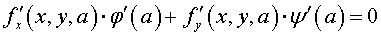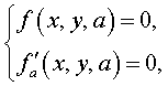 - В т о р ой ш а г. Решаем получаемое таким образом уравнение и данное уравнение семейства кривых относительно x и y. Получаемый результат и будет представлять собой параметрические уравнения огибающей.
