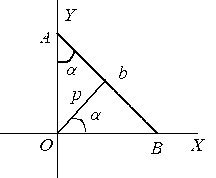 Р е ш е н и е. Пусть АВ = b и пусть уравнение прямой AB представлено в нормальном виде