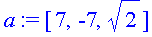 >restart:with(linalg):z:=(x,y)->5*x^2-3*x-y-1;M:=[2,1]:N:=[5,5]:MN:=vector(N-M):cos(alpha):=MN[1]/norm(MN,2):cos(beta):=MN[2]/norm(MN,2):x1:=M[1]:y1:=M[2]:D[1](z)(x1,y1)*cos(alpha)+D[2](z)(x1,y1)*cos(beta);#Производная по направлению функции z в точке М по направлению к точке N