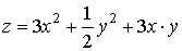 | 26 | z = 3 x2 + 2 y2 + x y | А(4; − 1), В(− 5; − 9), С(− 1; − 2) |