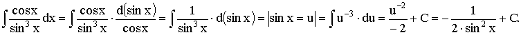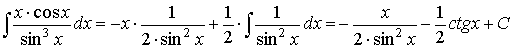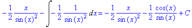 > with(student):g:=(x)->cos(x)/(sin(x))^3:f:=(x)->x:intparts(Int(g(x)*f(x),