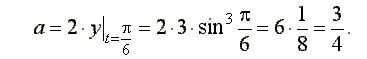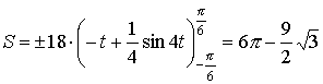 Учитывая то, что линия задана в параметрическом виде, формулу для нахождения площади будем использовать в виде