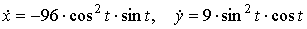 > x:=t->32*(cos(t))^3:y:=t->3*(sin(t))^3: