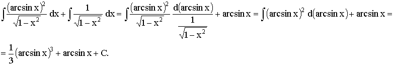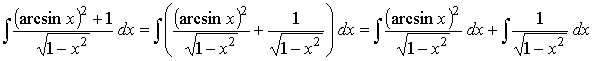 Второй интеграл является табличным, а в первом введём новый аргумент интегрирования u = arcsin (x):