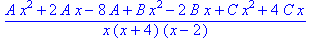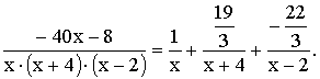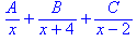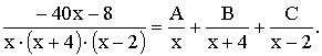 >A/x+B/(x+4)+C/(x-2); — задаётся разложение подынтегральной функции на простейшие дроби