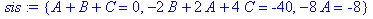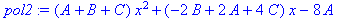 >sis:={coeff(pol2,x,2)=coeff(pol1,x,2),coeff(pol2,x,1)=coeff(pol1,x,1),coeff(pol2,x,0)=coeff(pol1,x,0)}; — составляется система